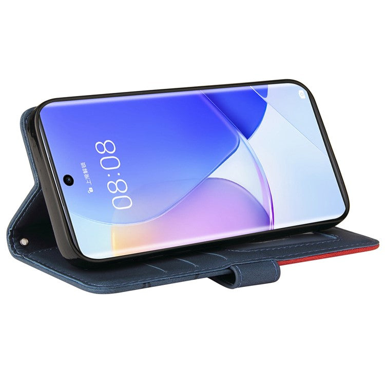 KT Leather Series-1 Anti-fingerprint Dual-Color Splicing Style Flip Phone Shell PU Leather Wallet Design Phone Case with Stand for Huawei nova 9 / Honor 50 - Blue