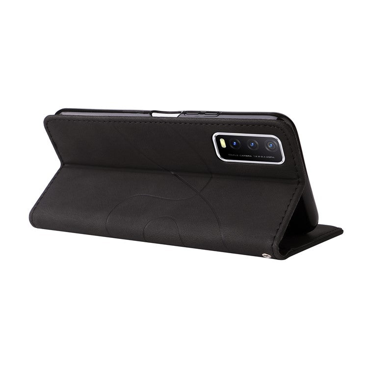 KT Leather Series-1 Bi-color Splicing PU Leather Wallet Stand Flip Phone Case with Strap for vivo Y20 / Y20s / Y20A / Y20i / Y20G / Y20s [G] / Y11s/ Y12a / Y12s - Black