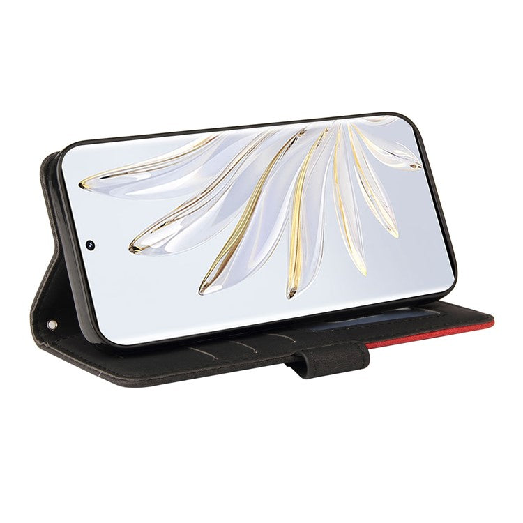 KT Leather Series-1 For Honor 70 5G Dual-color Splicing PU Leather Phone Wallet Case Stand Function Phone Cover with Strap - Black