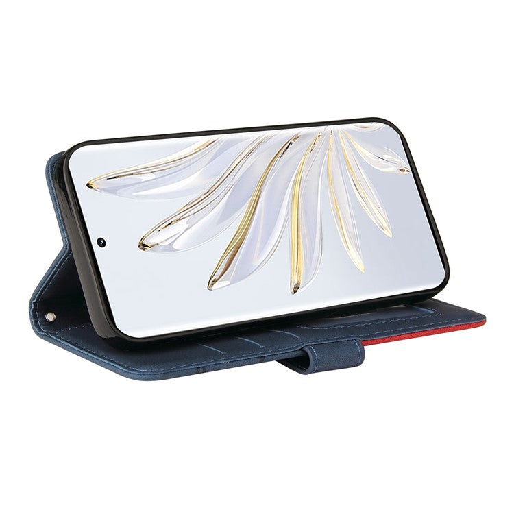 KT Leather Series-1 For Honor 70 5G Dual-color Splicing PU Leather Phone Wallet Case Stand Function Phone Cover with Strap - Blue