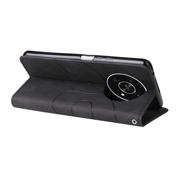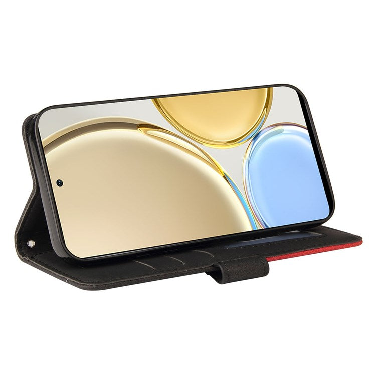 KT Leather Series-1 for Honor X9 5G/X30 5G/Magic 4 Lite 5G Dual-color Splicing Stand Wallet PU Leather Case Phone Cover - Black