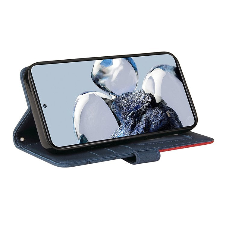 KT Leather Series-1 For Motorola Edge 30 Fusion 5G / Moto S30 Pro 5G Dual-color Splicing Full Coverage PU Leather Phone Wallet Case Stand Drop-proof Cover with Strap - Blue