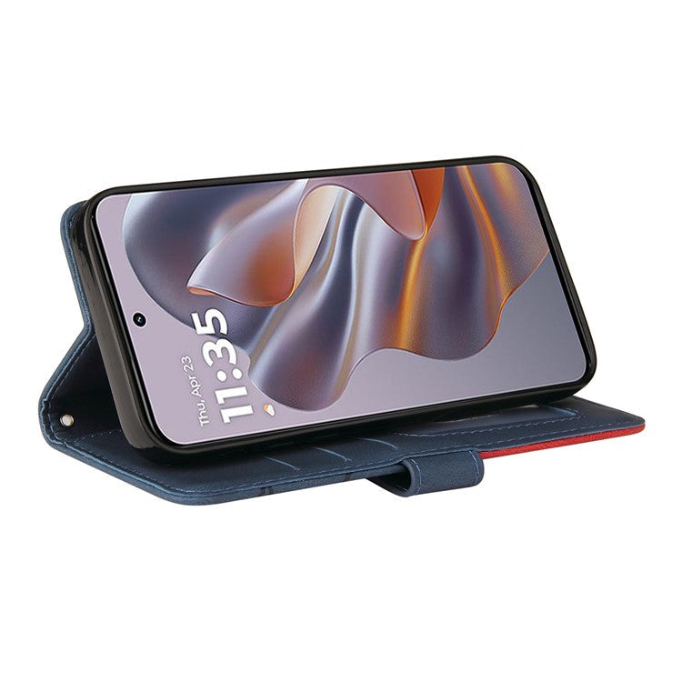 KT Leather Series-1 For Motorola Edge 50 Neo 5G / Moto S50 5G / Thinkphone 25 5G Leather Case Color Splicing Phone Cover Wallet Stand - Blue