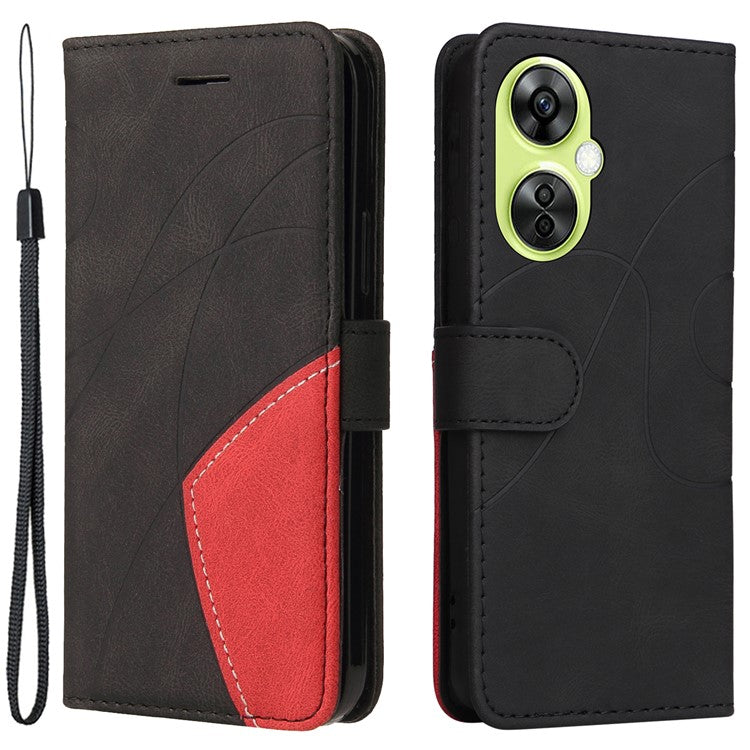 KT Leather Series-1 For OnePlus Nord CE 3 Lite 5G / Nord N30 5G Wallet Phone Case Flip Dual-color Splicing Leather Stand Cover - Black