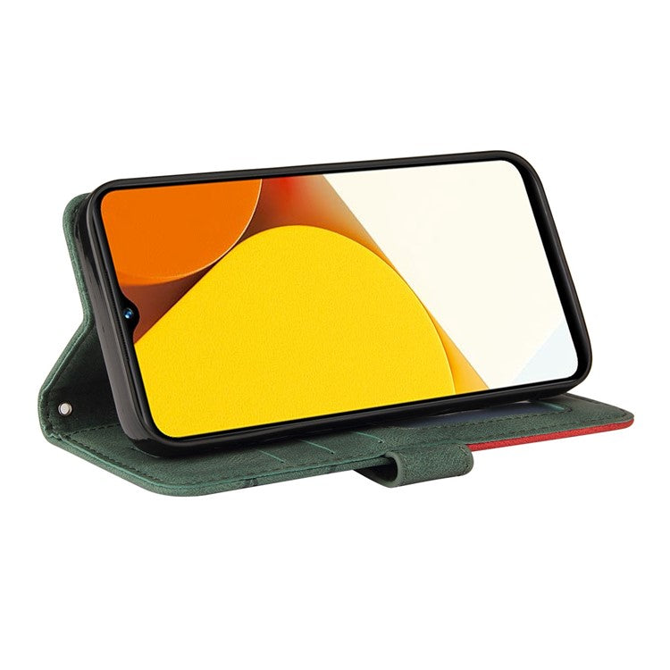 KT Leather Series-1 Phone Case for vivo Y35 / Y22s 4G / Y22 4G, Dual-color Splicing PU Leather+TPU Stand Wallet Cover - Green