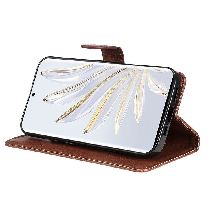 KT Leather Series-2 for Honor 70 5G PU Leather Flip Phone Case Full Body Protection Stand Solid Color Wallet Magnetic Cover with Strap - Brown