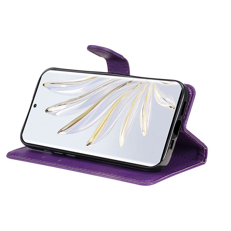 KT Leather Series-2 for Honor 70 5G PU Leather Flip Phone Case Full Body Protection Stand Solid Color Wallet Magnetic Cover with Strap - Purple