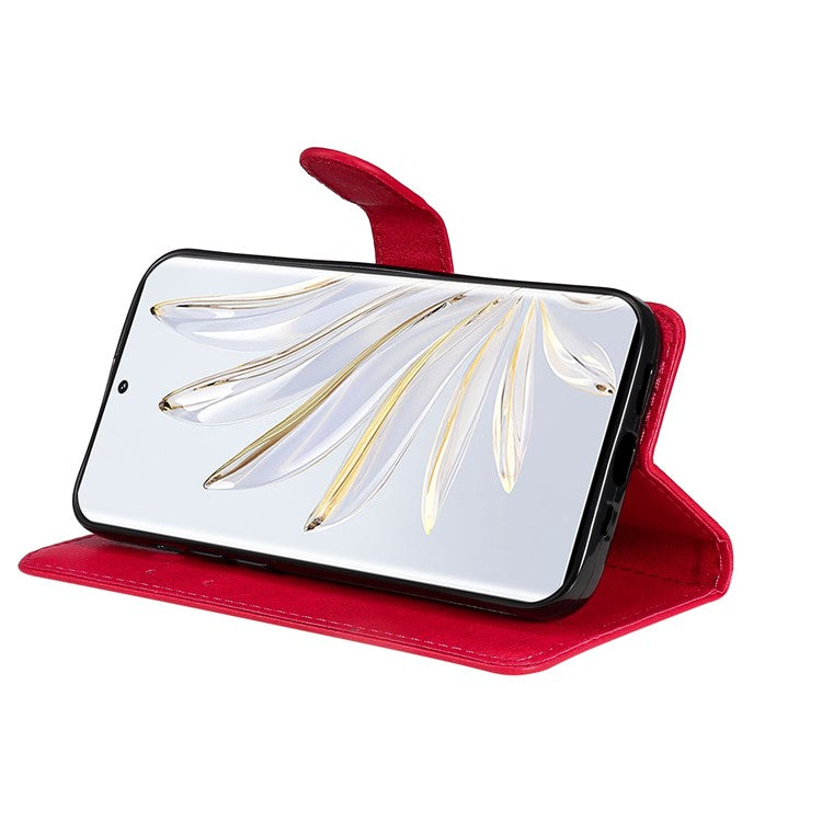 KT Leather Series-2 for Honor 70 5G PU Leather Flip Phone Case Full Body Protection Stand Solid Color Wallet Magnetic Cover with Strap - Red