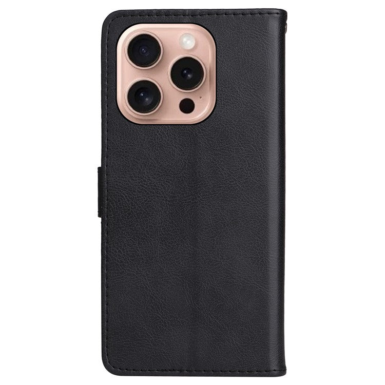 KT Leather Series-2 for iPhone 16 Pro Protective Case Solid Color Leather Phone Cover - Black