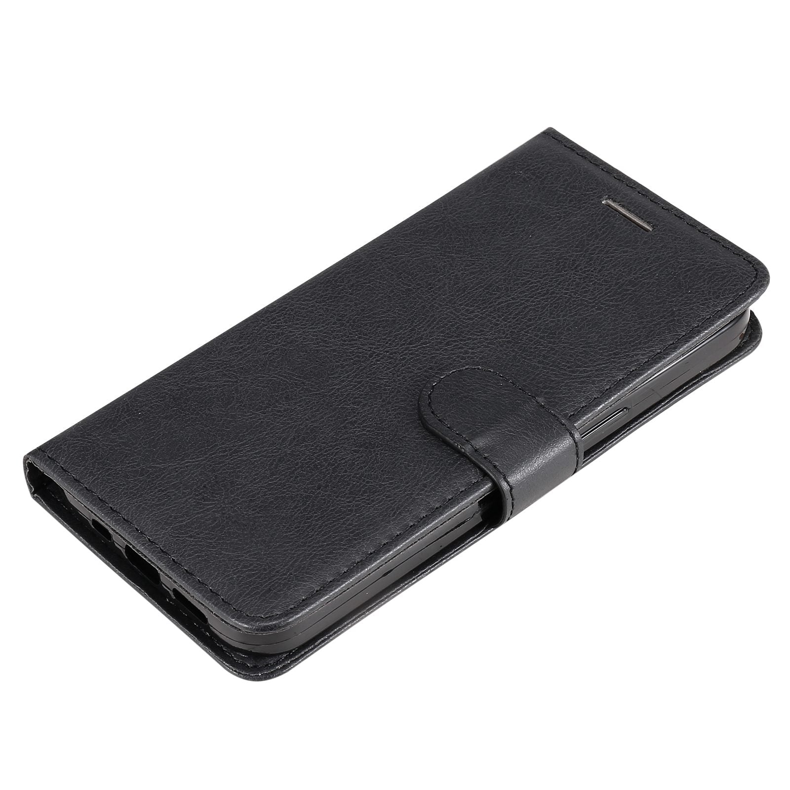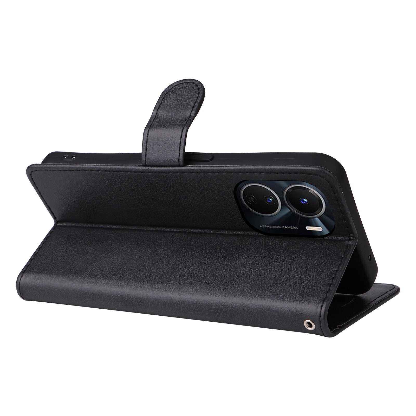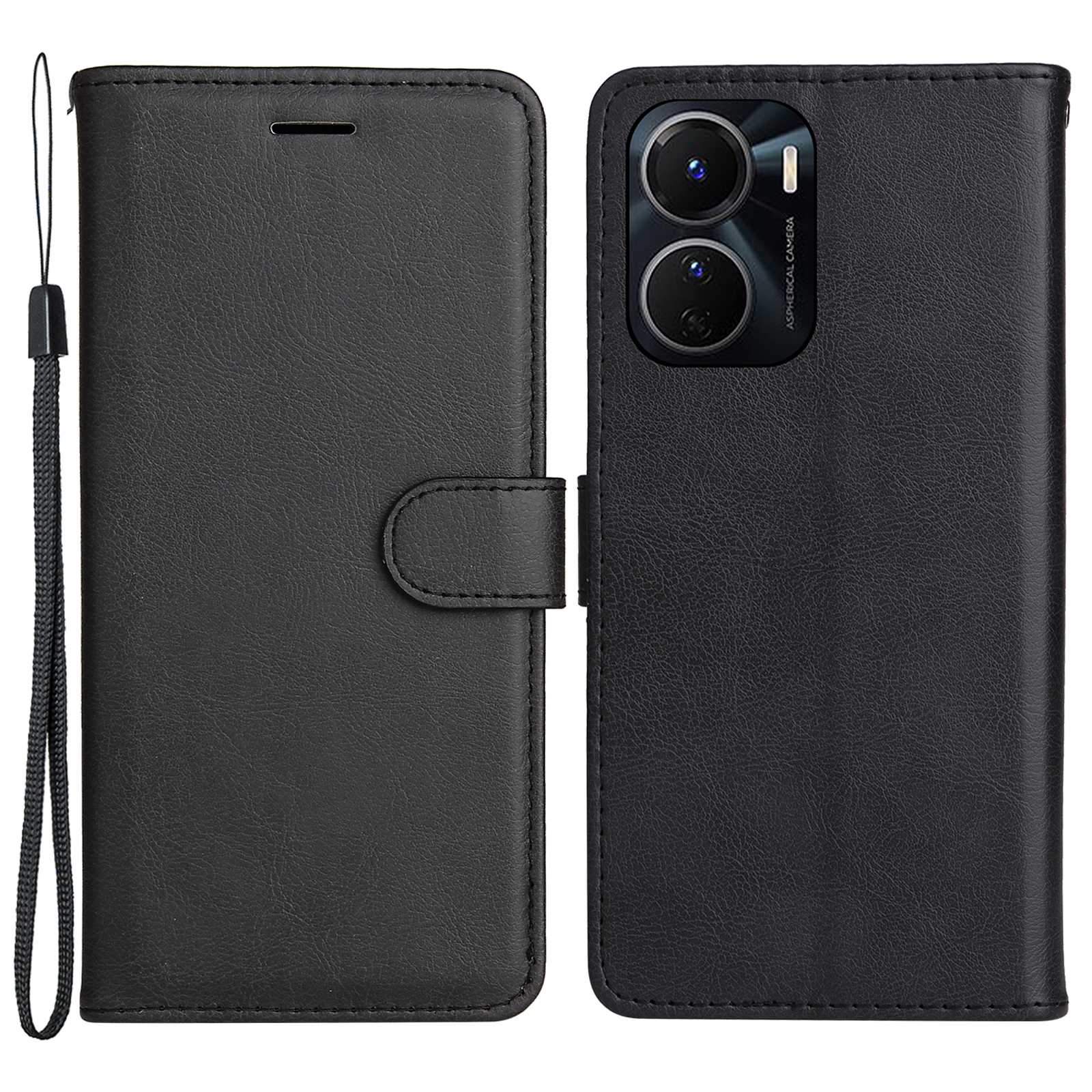 KT Leather Series-2 for vivo Y16 4G / Y02s 4G PU Leather Flip Wallet Case Solid Color Magnetic Closure Stand Shockproof Cover with Strap - Black