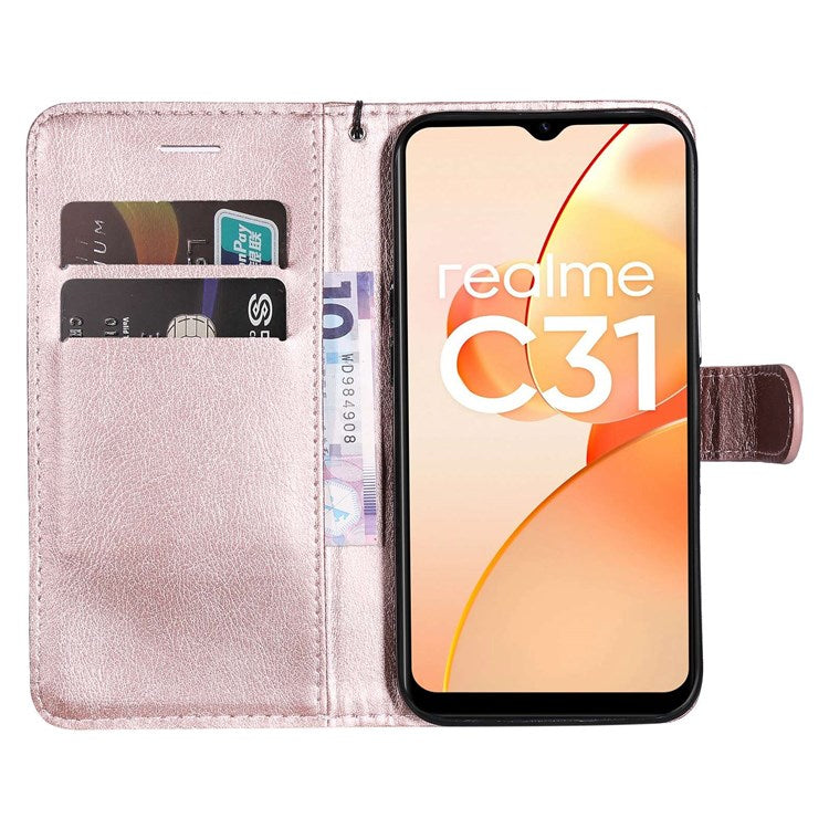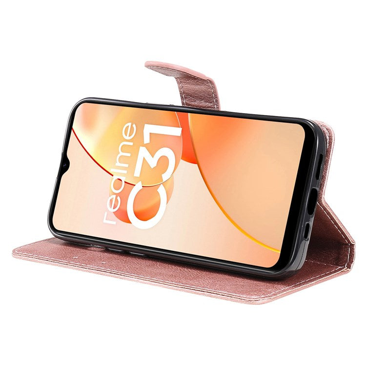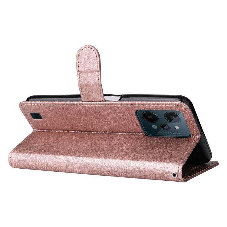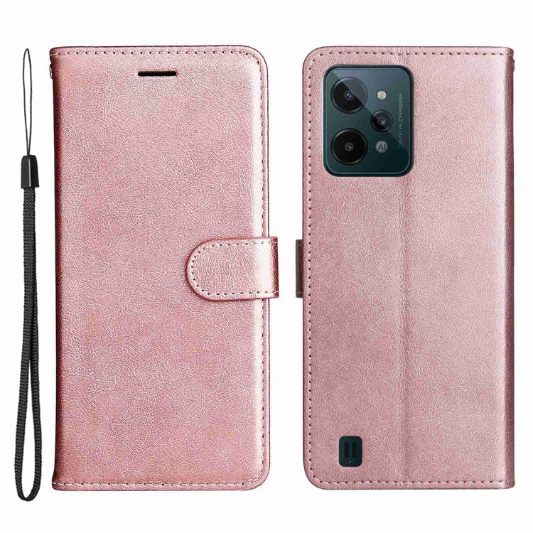 KT Leather Series-2 Leather Stand Phone Casing for Realme C31, Wallet Design Leather Phone Case with Handy Strap - Rose Gold
