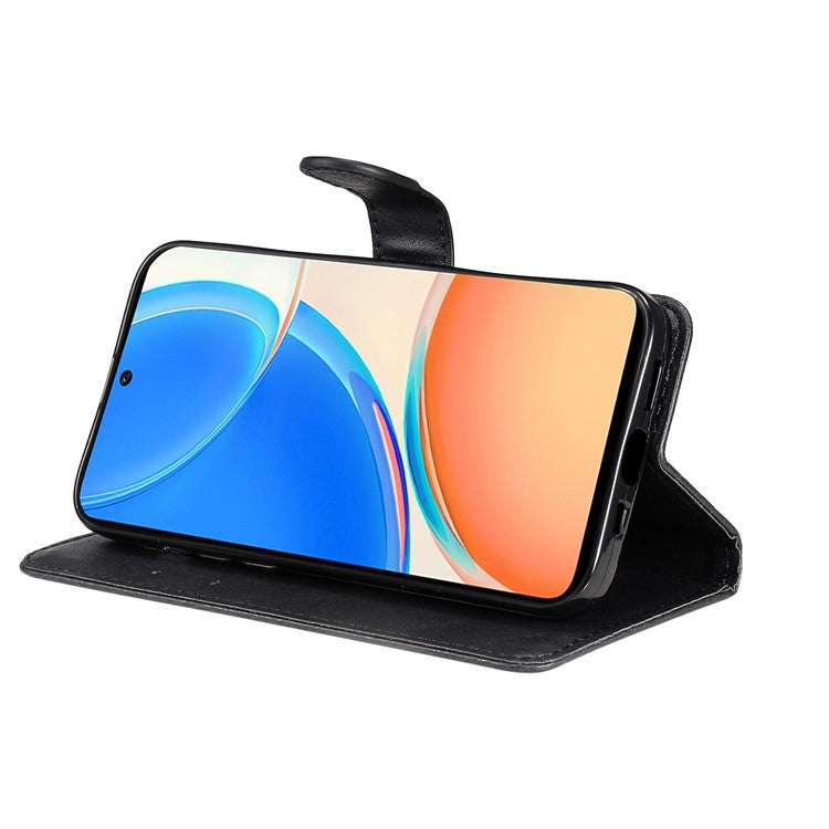 KT Leather Series-2 Phone Case for Honor X8 4G, All-round Shockproof PU Leather Flip Wallet Cover Solid Color Magnetic Closure Stand Phone Shell with Strap - Black