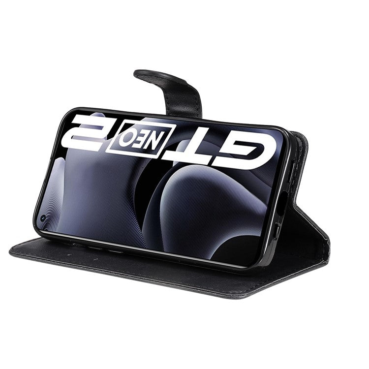 KT Leather Series-2 Solid Color Anti-drop PU Leather Case Magnetic Closure Phone Protective Cover with Wallet Stand for Realme GT Neo2 5G/GT Neo 3T 5G - Black