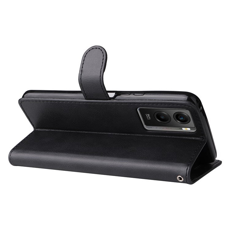 KT Leather Series-2 Wallet Purse Case for vivo Y55s 5G, PU Leather Folio Stand Magnetic Shockproof Protective Cover with Wrist Strap - Black