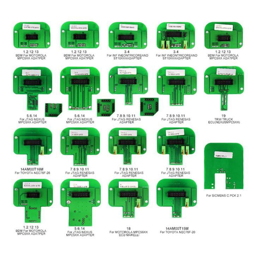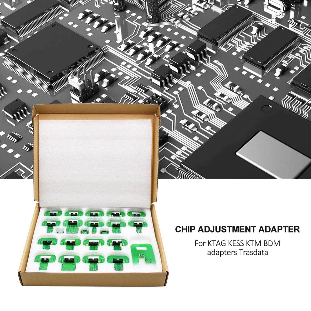 A perfect tool for chip adjustament.Features:Full set of BDM adapters for KESS /Trasdata chiptuning tool.A full set comes with 22 BDM adapters.Equipped with 22 various tools meeting different working demands.Suitable for 60mm width BDM Probe.Specifications:Adapter thickness: 2mmAdapter color: greenPackage size: 230 * 170 * 60mm / 9.06 * 6.69 * 2.36inPackage weight: 550g / 19.40ouncePackage list:22 *Adapters