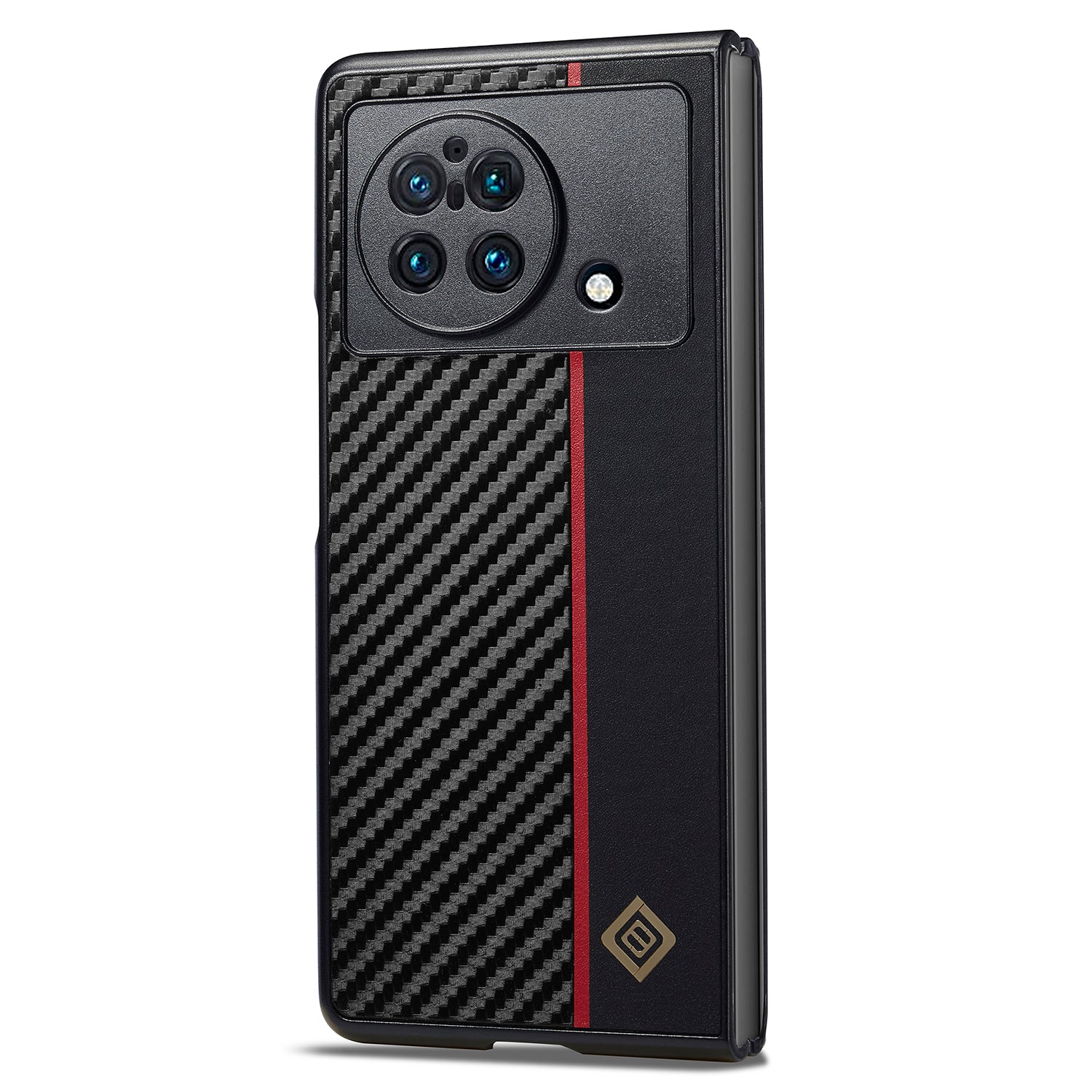 - Carbon fiber texture and fine texture splicing PU leather coating, with red vertical stripe, stylish look
