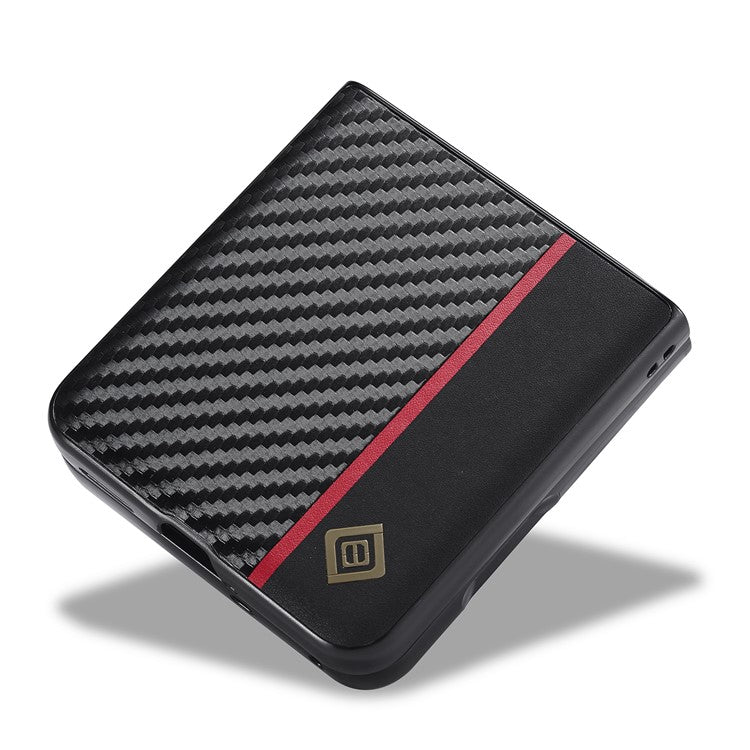 - Carbon fiber texture and fine texture splicing PU leather coating, with red vertical stripe, stylish look