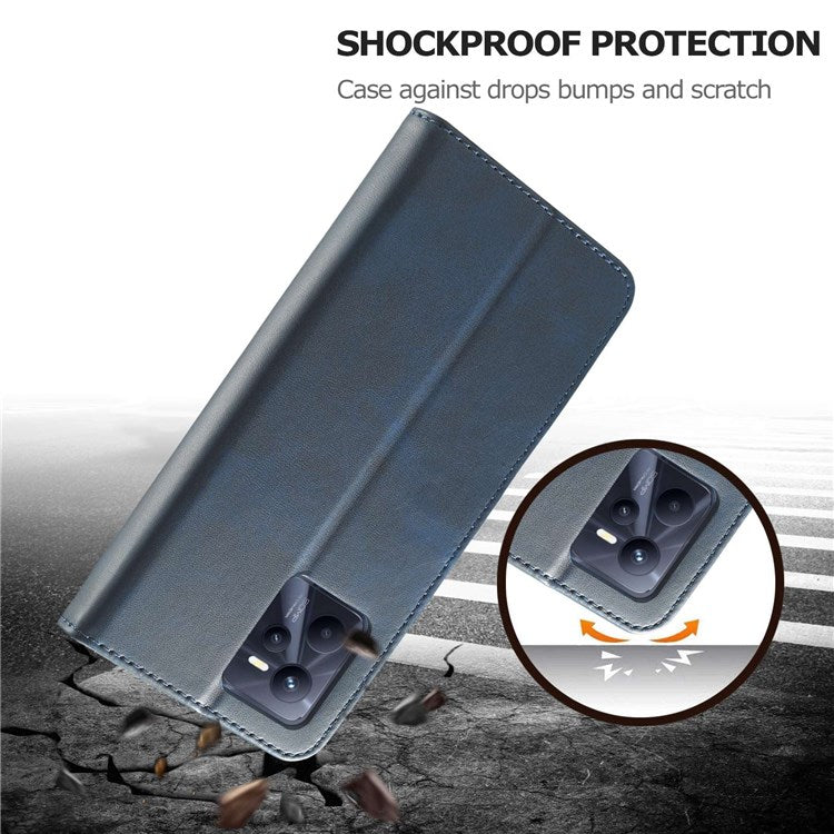 LC.IMEEKE for Realme C35 Textured PU Leather Flip Folio Anti-drop Stand Wallet Case Mobile Phone Case Cover - Blue