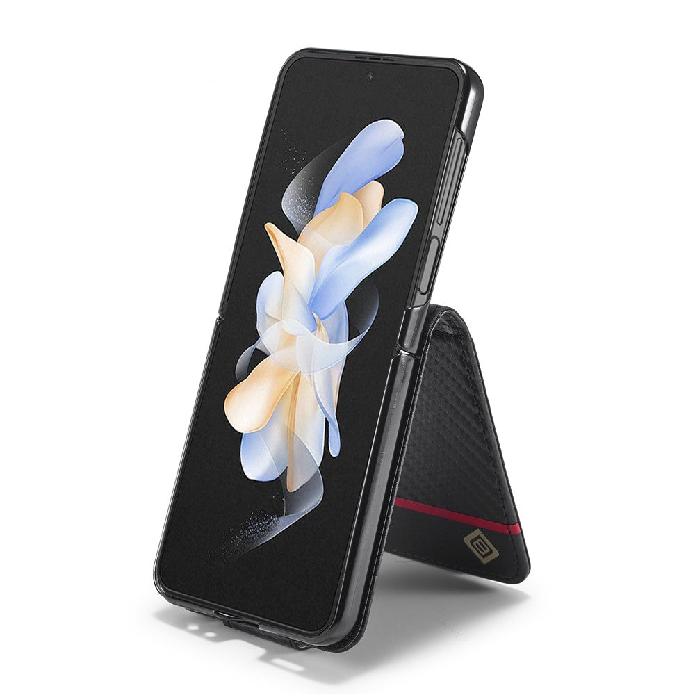 LC.IMEEKE For Samsung Galaxy Z Flip7 FE 5G / Z Flip6 5G Case Carbon Fiber Texture Card Holder Back Phone Cover - Horizontal Stripe