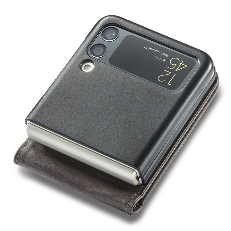 LC.IMEEKE Supporting Stand Card Slot Design Phone Cover PU Leather Folding Phone Case for Samsung Galaxy Z Flip3 5G - Grey