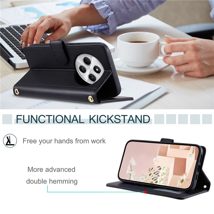 Leather Case for Xiaomi Poco C75 4G / Redmi 14R 5G / 14C 4G Wallet Rhombus Grid Phone Cover - Black