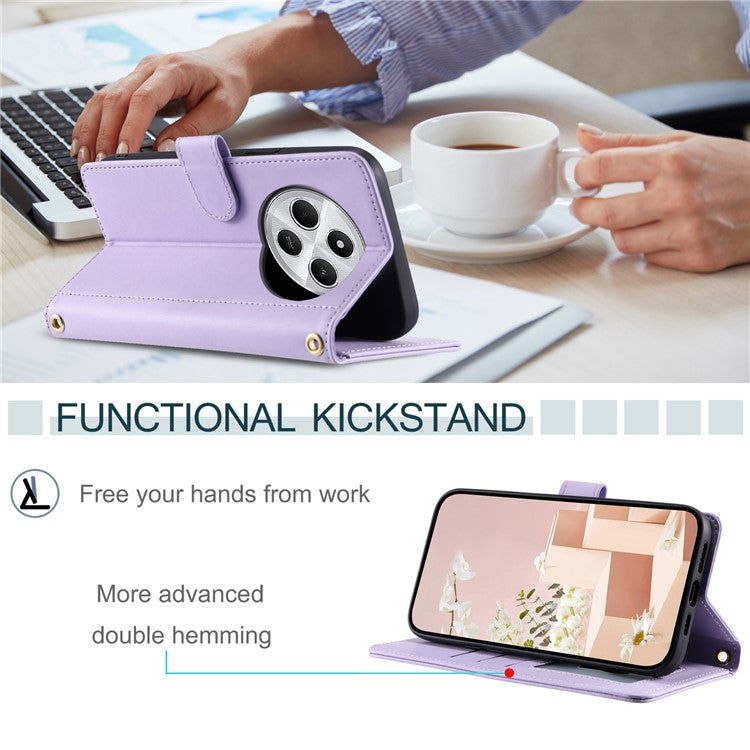 Leather Case for Xiaomi Poco C75 4G / Redmi 14R 5G / 14C 4G Wallet Rhombus Grid Phone Cover - Purple
