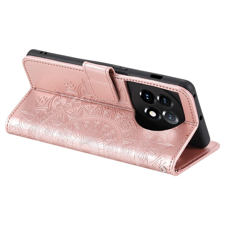 Leather Flip Case for OnePlus 11 5G Shockproof Phone Shell Mandala Flower Pattern Wallet Phone Cover - Rose Gold