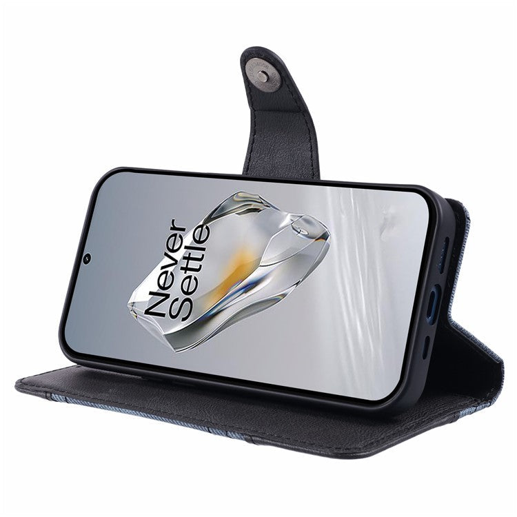 Leather Phone Case for OnePlus 12 5G Cover Splicing Design Crazy Horse Texture Wallet Shell - Black