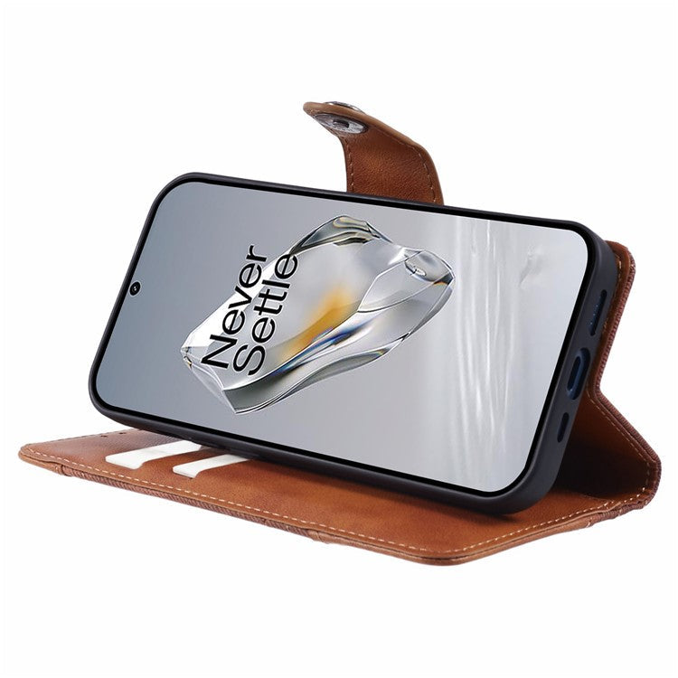 Leather Phone Case for OnePlus 12 5G Cover Splicing Design Crazy Horse Texture Wallet Shell - Brown