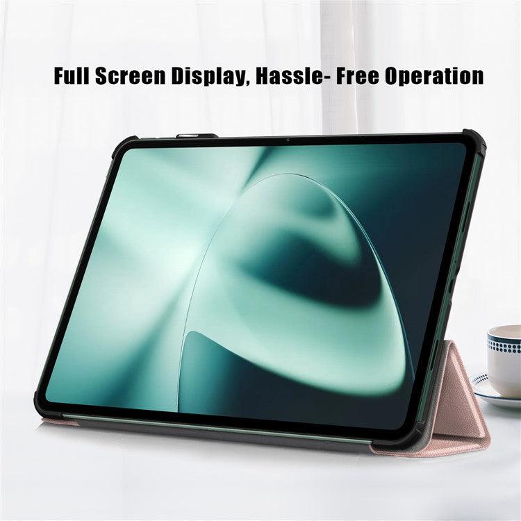 Leather Tablet Case for OnePlus Pad / Oppo Pad 2 Tri-fold Stand Tablet Cover with Auto Wake / Sleep - Rose Gold