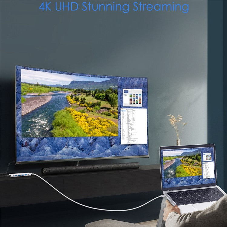 LENTION C35H-1M USB-C Hub Converter Multi-port Docking Station Type-C to 4 USB-A3.0+HD+PD Adapter Compatible with macOS, Windows, Vista, Linux Systems - Silver