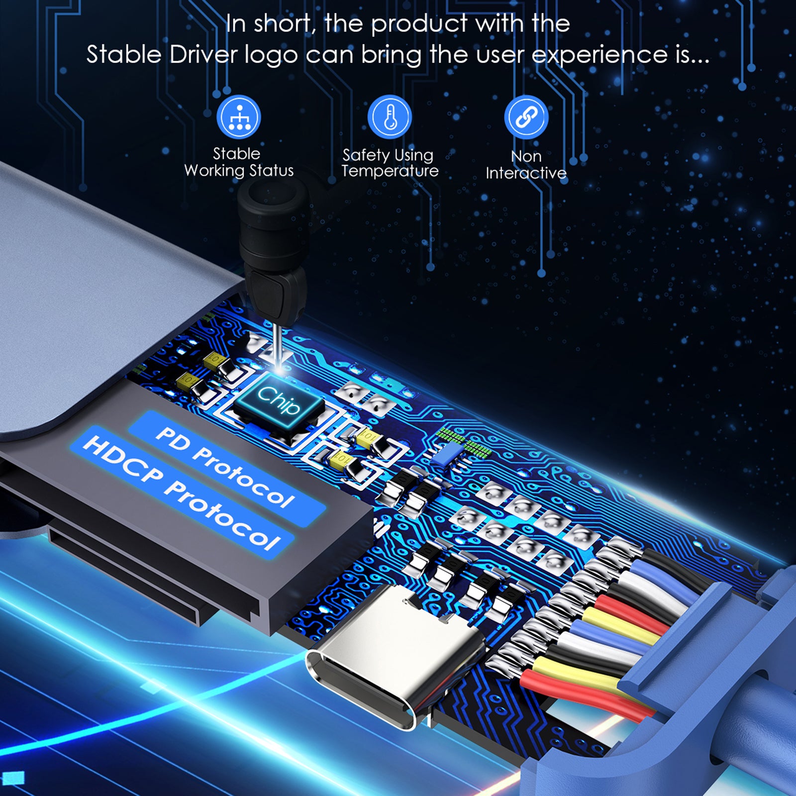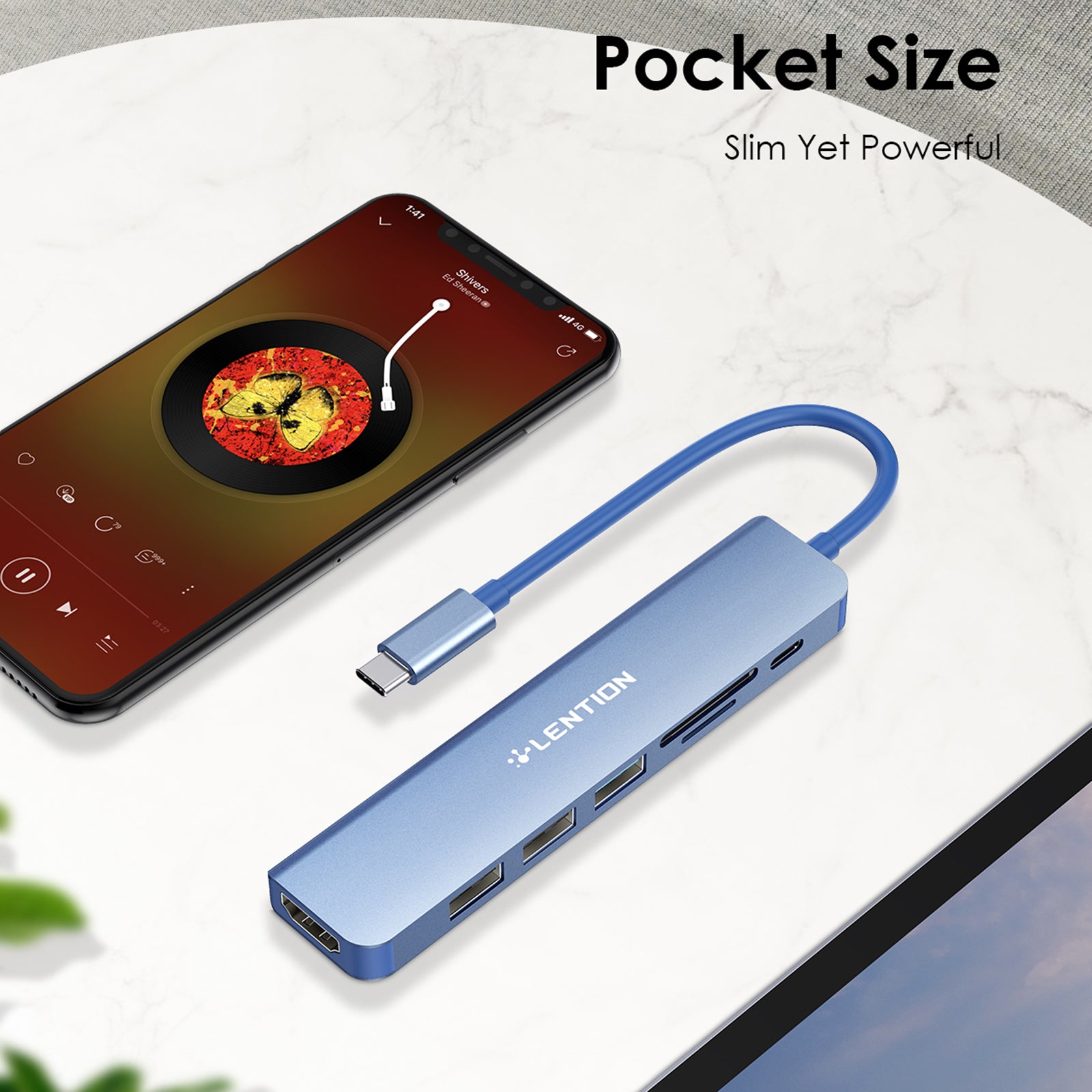 Uniqkart CE18HCR Cloud Ala Series Portable USB Hub Adapter Type-C Docking Station with USB+HD 4K / 30Hz+SD / TF+PD 100W - Blue