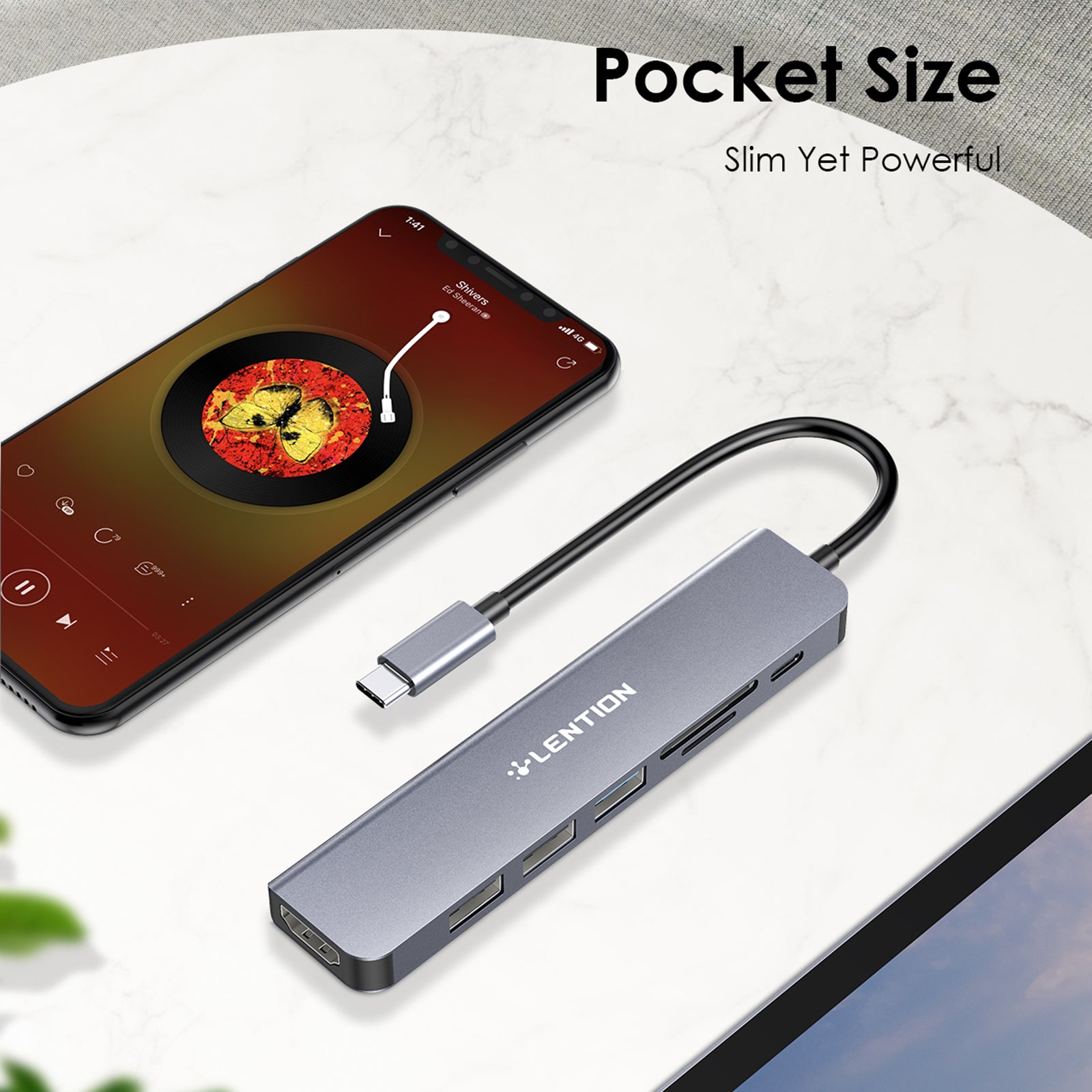 Uniqkart CE18HCR Cloud Ala Series Portable USB Hub Adapter Type-C Docking Station with USB+HD 4K / 30Hz+SD / TF+PD 100W - Grey
