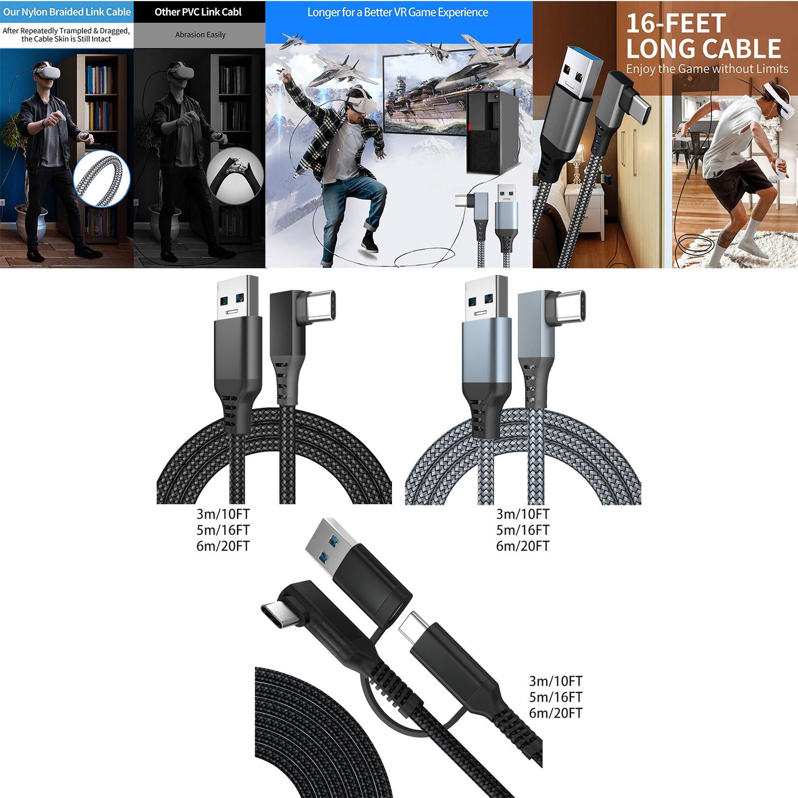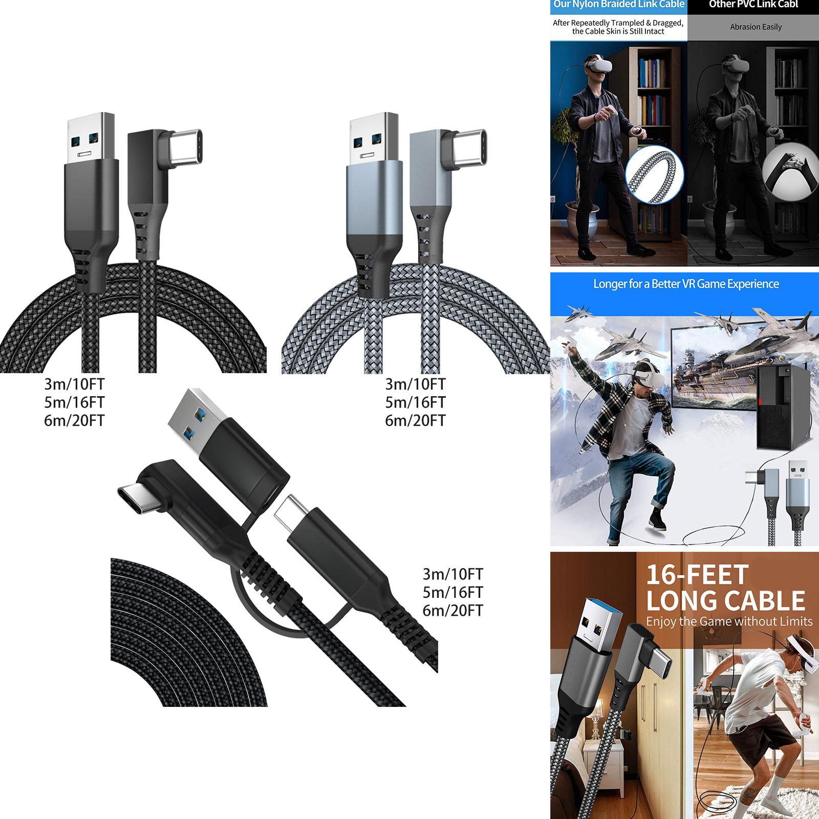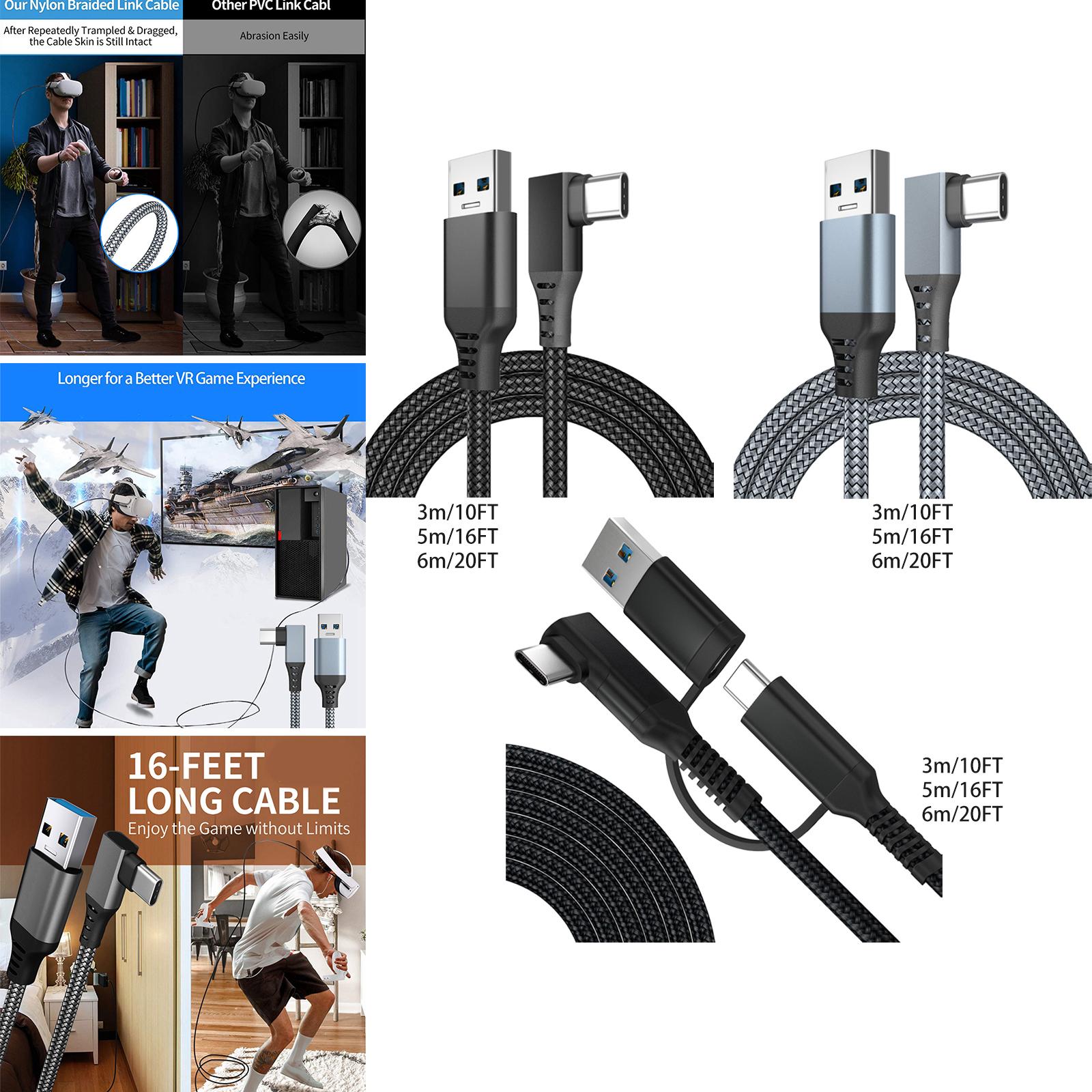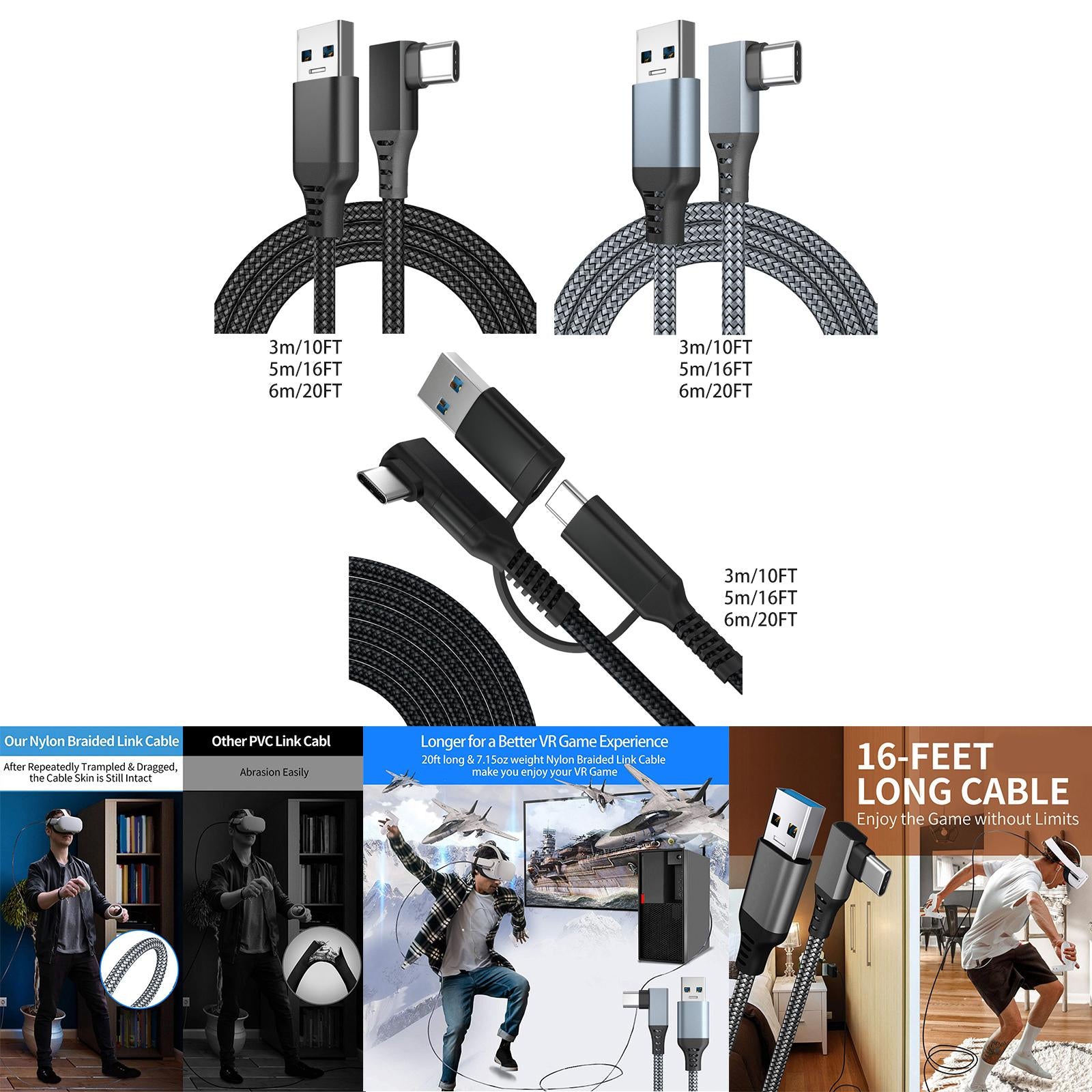 Link Cable Fast Charge 90 Degree for Quest 2 VR Headset Black 3m 10ft