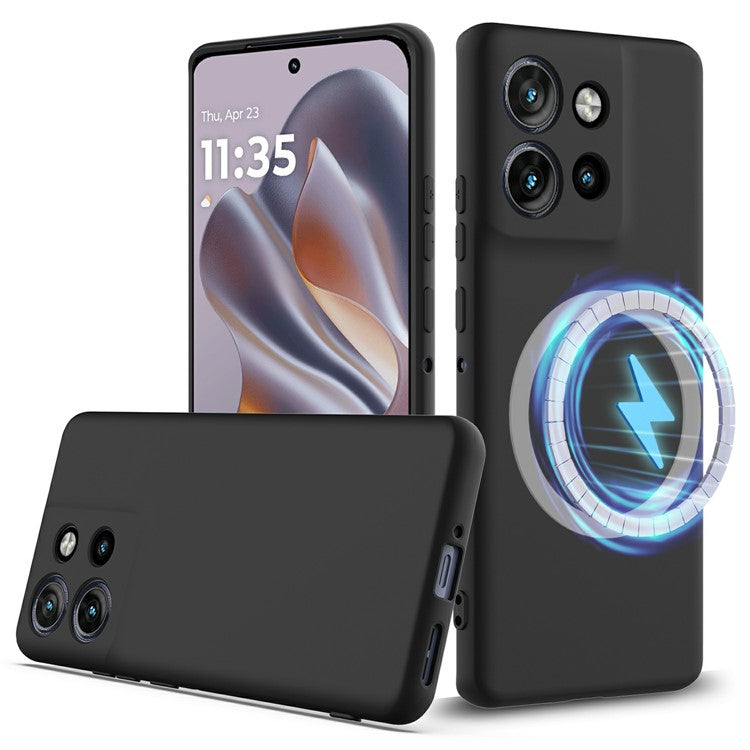 Liquid Silicone Case For Motorola Edge 50 Neo 5G / Moto S50 5G / ThinkPhone 25 5G Compatible with MagSafe Phone Cover with Lanyard - Black