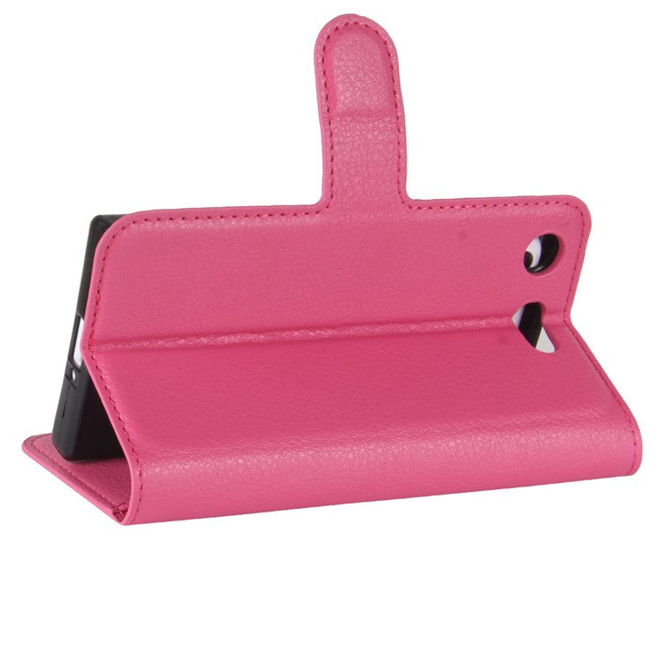 Litchi Grain Card Slots Leather Protective Flip Case Cover for Sony Xperia XZ1 Compact Wallet Stand Phone Case - Rose