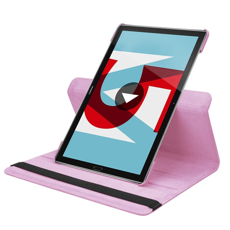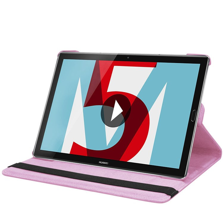 Litchi Grain Leather Stand Folio Cover for Huawei MediaPad M5 10/M5 10 (Pro) with Elastic Band - Pink