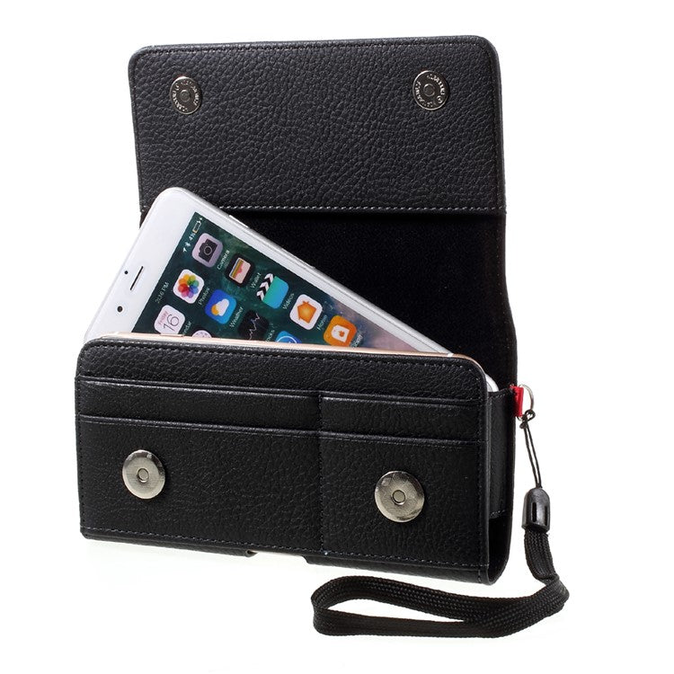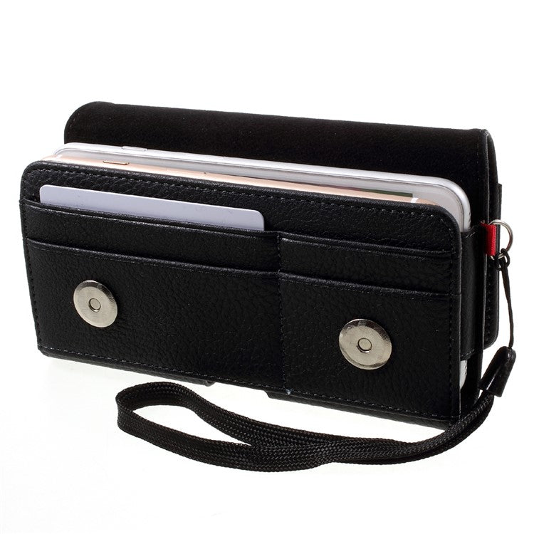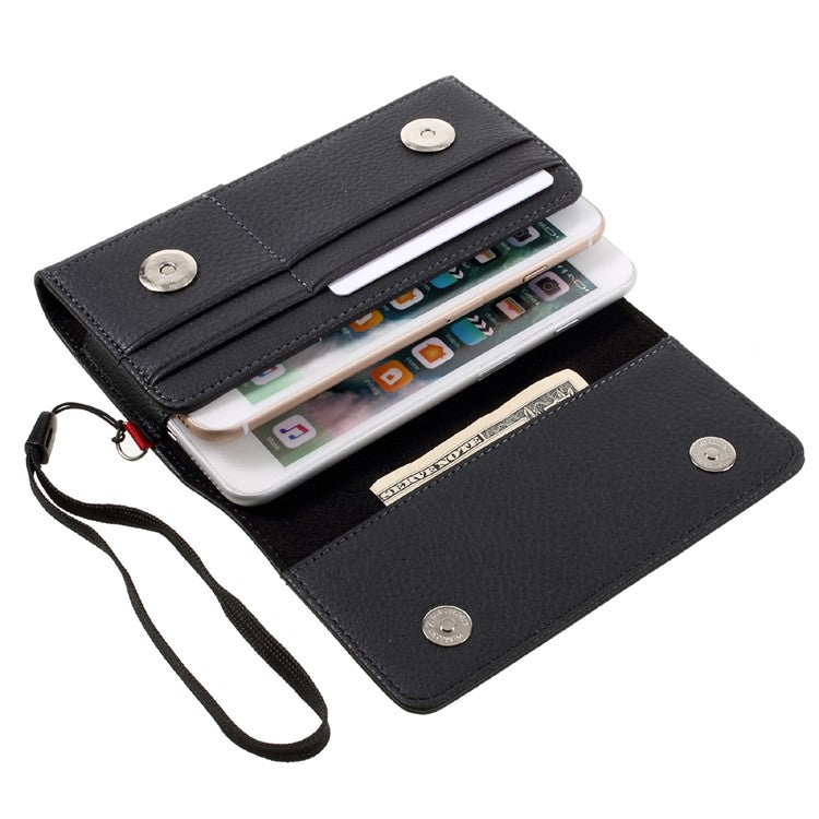 Litchi Leather Holster Cover Dual-layer Coin/Card Slots Pouch for iPhone 8 Plus / Samsung S9+, Size: 160 x 83 x 10mm