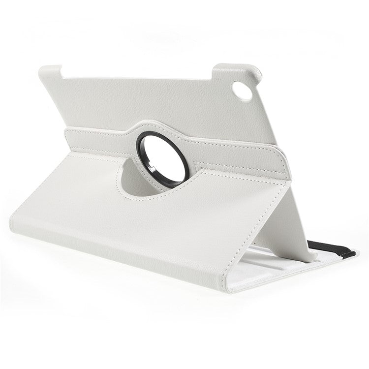 Litchi Skin Leather Cover with Rotating Stand for Huawei MediaPad M5 10 / M5 10 (Pro) - White