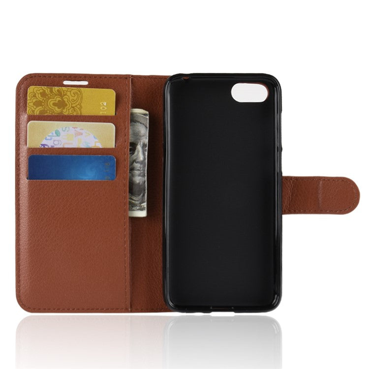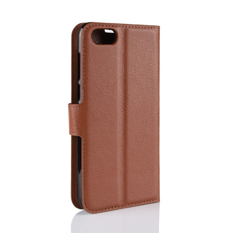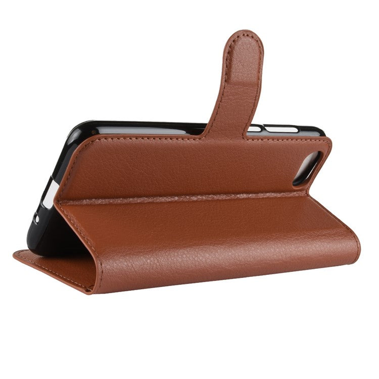 Litchi Skin Leather Wallet Case Cover for Huawei Y5 Prime (2018) / Y5 (2018) - Brown