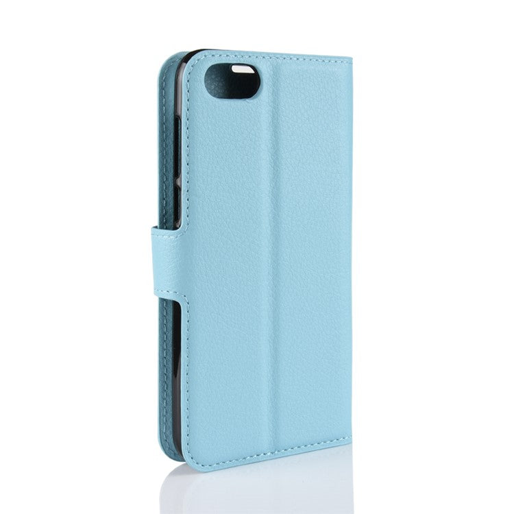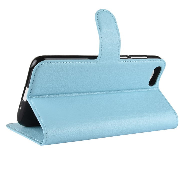 Litchi Skin Leather Wallet Cover for Huawei Y5 Prime (2018) / Y5 (2018) - Baby Blue