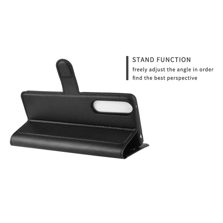 Litchi Skin Wallet Leather Stand Case for Sony Xperia 1 II - Black