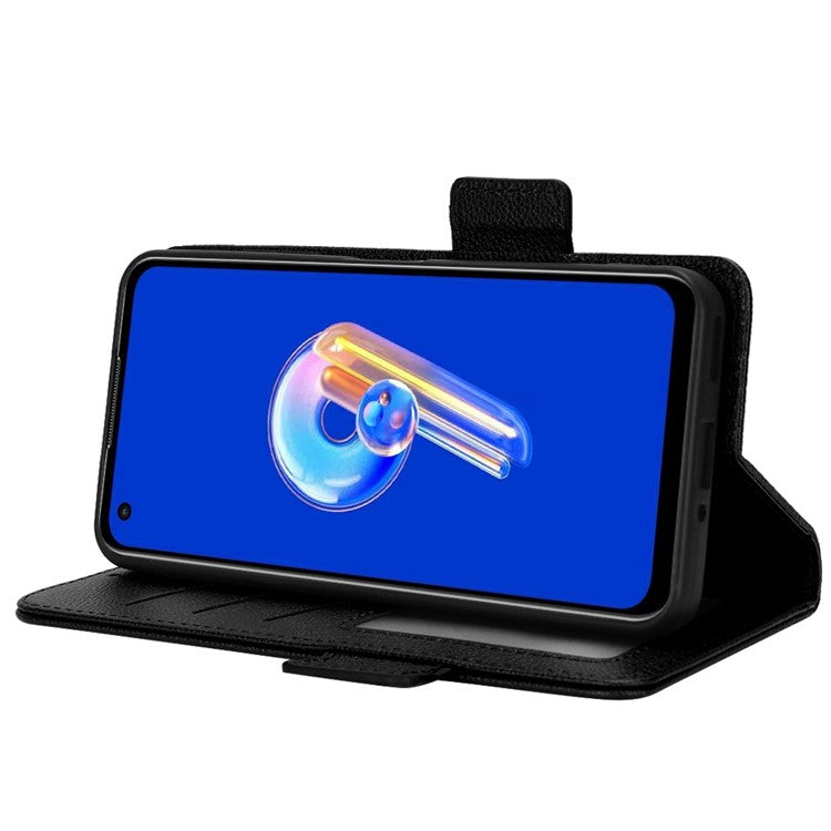 Litchi Texture Magnetic Clasp Phone Case for Asus Zenfone 10 5G / 9 5G PU Leather Foldable Stand Wallet Anti-drop Cover - Black