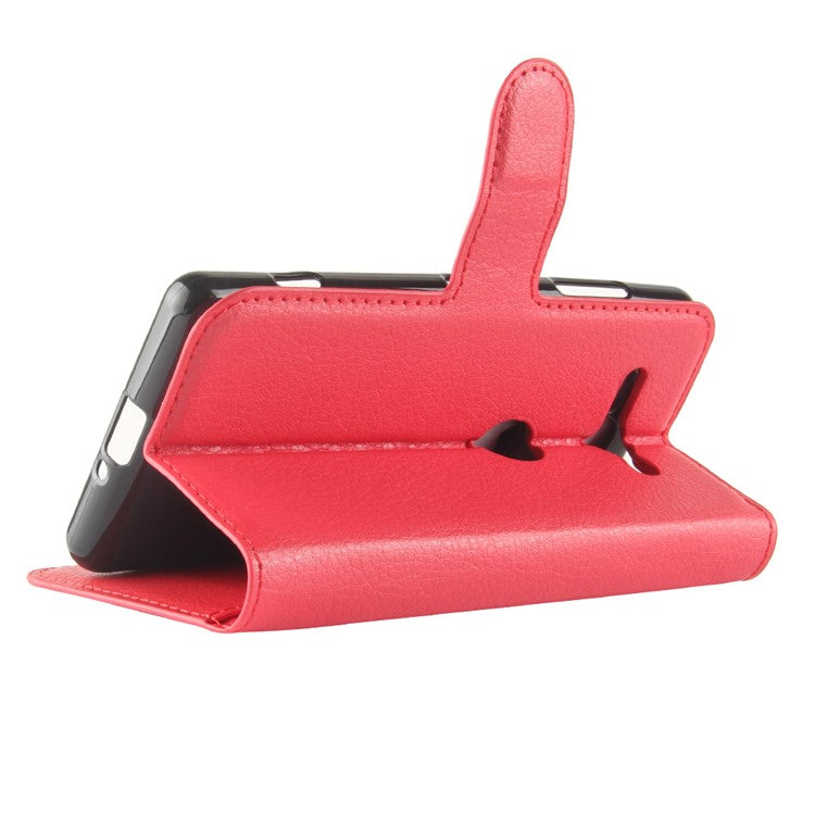 Litchi Texture PU Leather Wallet Stand Shell for Sony Xperia XZ2 Compact - Red