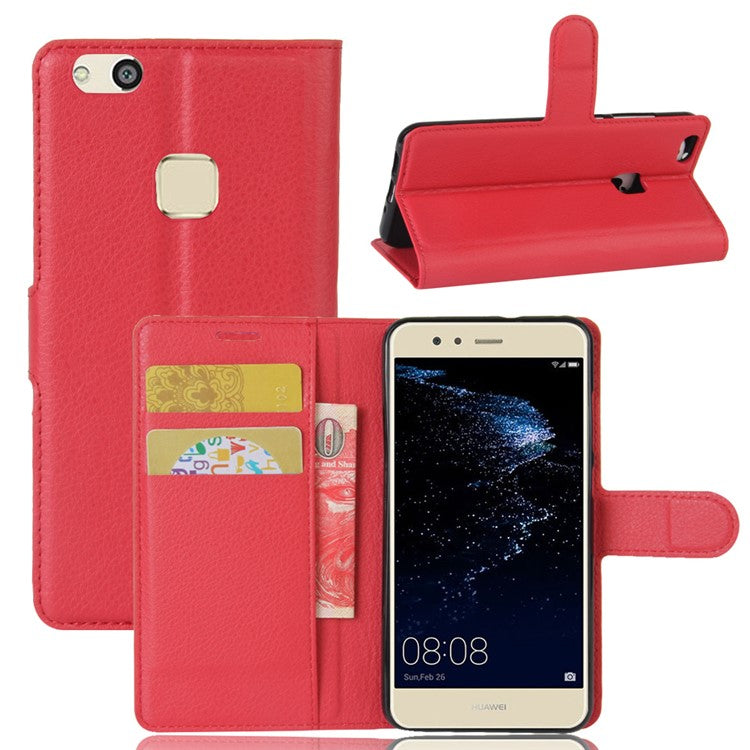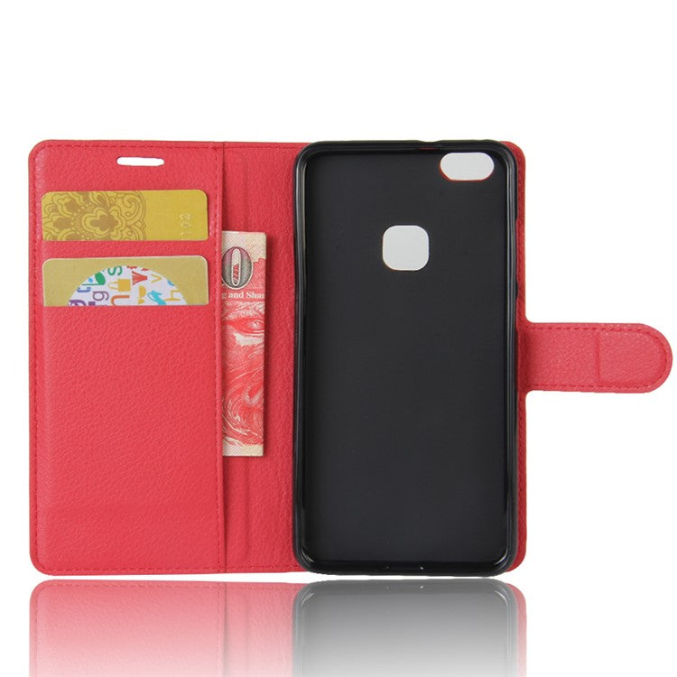 Lychee Litchi Skin Wallet Leather Cover with Stand for Huawei P10 Lite Mobile Cell Phone Accessory - Red