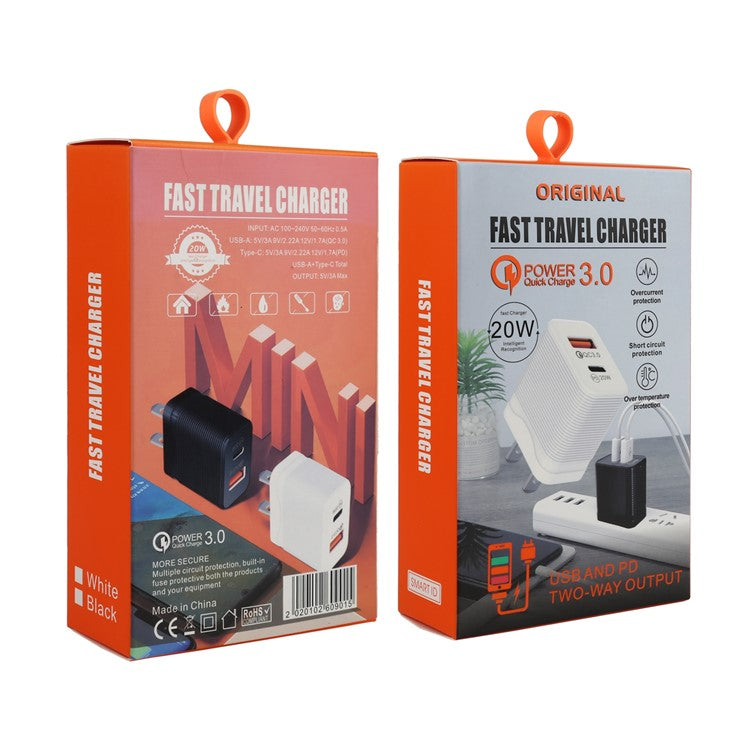 LZ-728 QC 3.0 USB+PD 20W Type-C Travel Wall Charger Fast Charging Phone Adapter for Xiaomi iPhone - Black US Plug