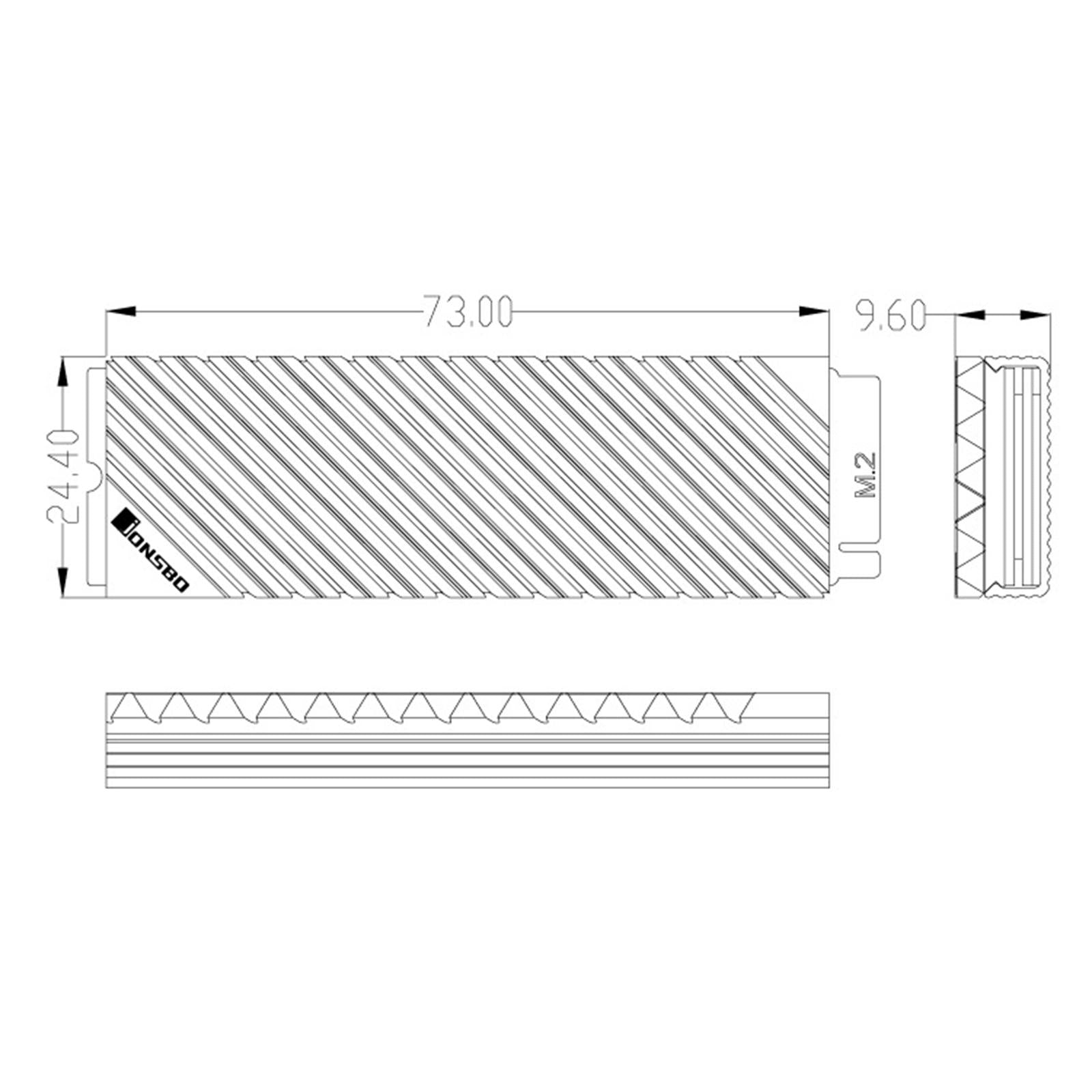 Diversion-type all-aluminum heat sink with built-in thermal conductive silicone pad, which conducts heat quickly and avoids overheating and slowing down the SSD.