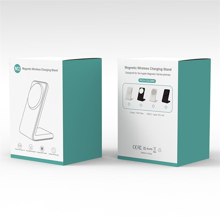 M2 15W Wireless Charging Stand for iPhone 12 / 13 / 14 / 15 Series Magnetic Wireless Charger (CE FCC ROHS UKCA) - White