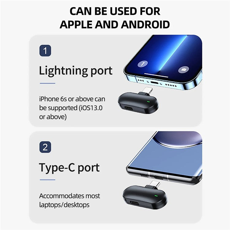 - Plug and pay. Just plug the receiver into your cell phone, the wireless microphone will be automatically paired and start working