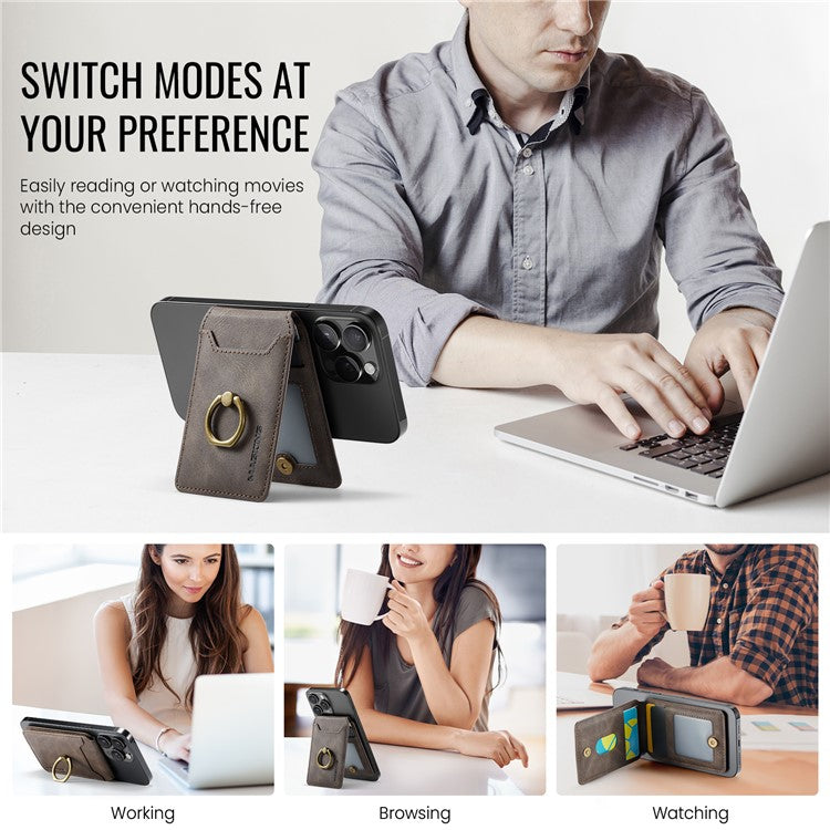 MAGKING K1 Kickstand Magnetic Card Holder Compatible with MagSafe RFID Blocking Cell Phone Wallet Built-In Ring - Coffee